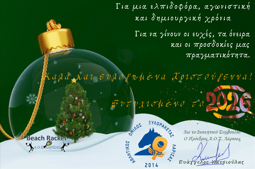 Με την ευκαιρία της εορταστικής περιόδου των Χριστουγέννων και του ερχομού του Νέου Έτους, ο Πρόεδρος του Α.Ο.Ξ. Λάρισας απευθύνει το παρακάτω μήνυμα