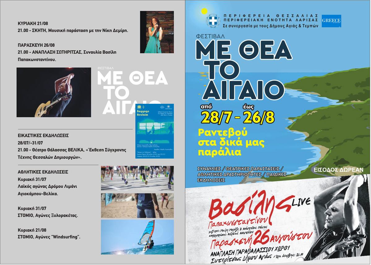 Ο θεσμός ‘’Με Θέα το Αιγαίο’’ που αγαπήθηκε από το κοινό και διοργανώνεται από την Περιφέρεια Θεσσαλίας σε συνεργασία με τους Δήμους Αγιάς και Τεμπών