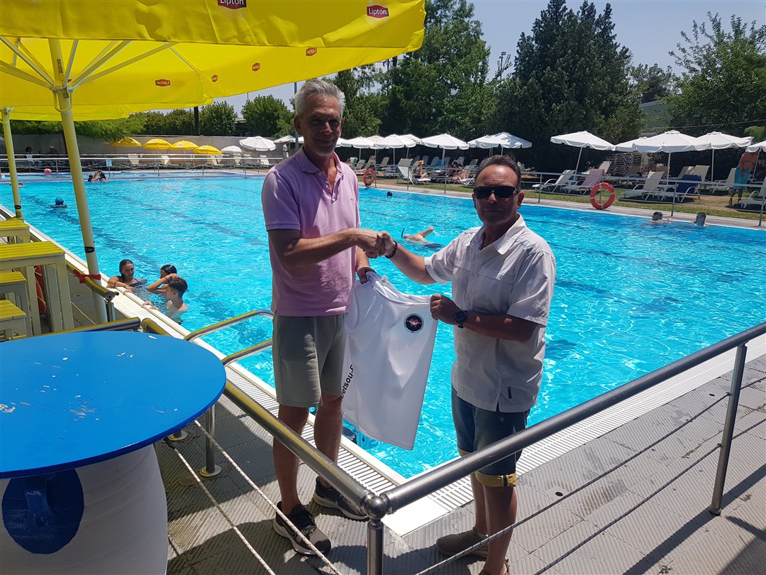 Τέλος ο κ. Στούμπας, προχώρησε σε μία υπέροχη χειρονομία ενόψει της εποικοδομητικής συνάντησης, δωρίζοντας την φανέλα του με το λογότυπου του Ομίλου στον πρόεδρο της Λάρισας, ο οποίος με τη σειρά του τον ευχαρίστησε και απέστειλε τους εγκάρδιους χαιρετισμούς του, στον πρόεδρο καθώς και σε όλα τα μέλη του Ομίλου Χειμερινών κολυμβητών & Ρακέτας Καλαμαριάς, ευχόμενος υγεία, πρόοδο και καλή πορεία στην επίτευξη των στόχων.