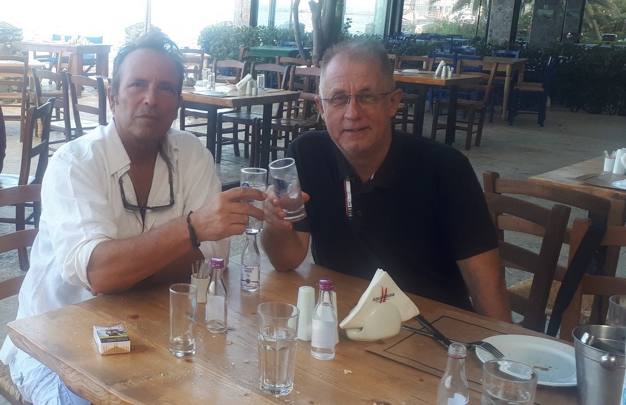 στην παραλία της Κουτσουπιάς, ο Πρόεδρος του Αθλητικού Ομίλου Ξυλορακέτας Λάρισας κ. Ευάγγελος Κατσιούλας, με τον χορηγό της εταιρείας, EasyLogic ΦΑΚΑΣ Α. & ΣΙΑ Ε.Ε. κ. Γεώργιο Φάκα.