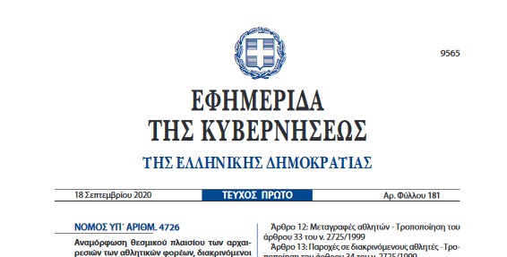 Μετά τη δημοσίευση του Νόμου 4726 (ΦΕΚ 181 Α΄ 18-9-2020), που αφορά στην αναμόρφωση θεσμικού πλαισίου των αρχαιρεσιών των...