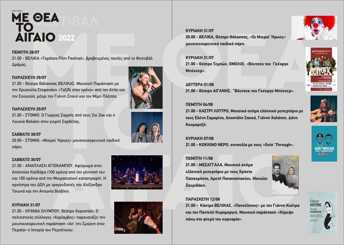 Ο θεσμός ‘’Με Θέα το Αιγαίο’’ που αγαπήθηκε από το κοινό και διοργανώνεται από την Περιφέρεια Θεσσαλίας σε συνεργασία με τους Δήμους Αγιάς και Τεμπών
